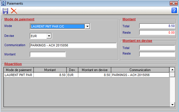 Appuyer sur la touche "PgUP" au lieu de la touche "PgDown" pour obtenir l'écran du mode de paiements.
