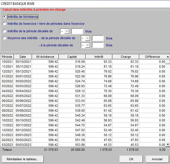 Pour visualiser le tableau d'emprunt, entrer dans le menu "Fiches" "Comptes généraux", entrer ensuite dans le détail du compte et cliquer sur "Ecritures automatiques"